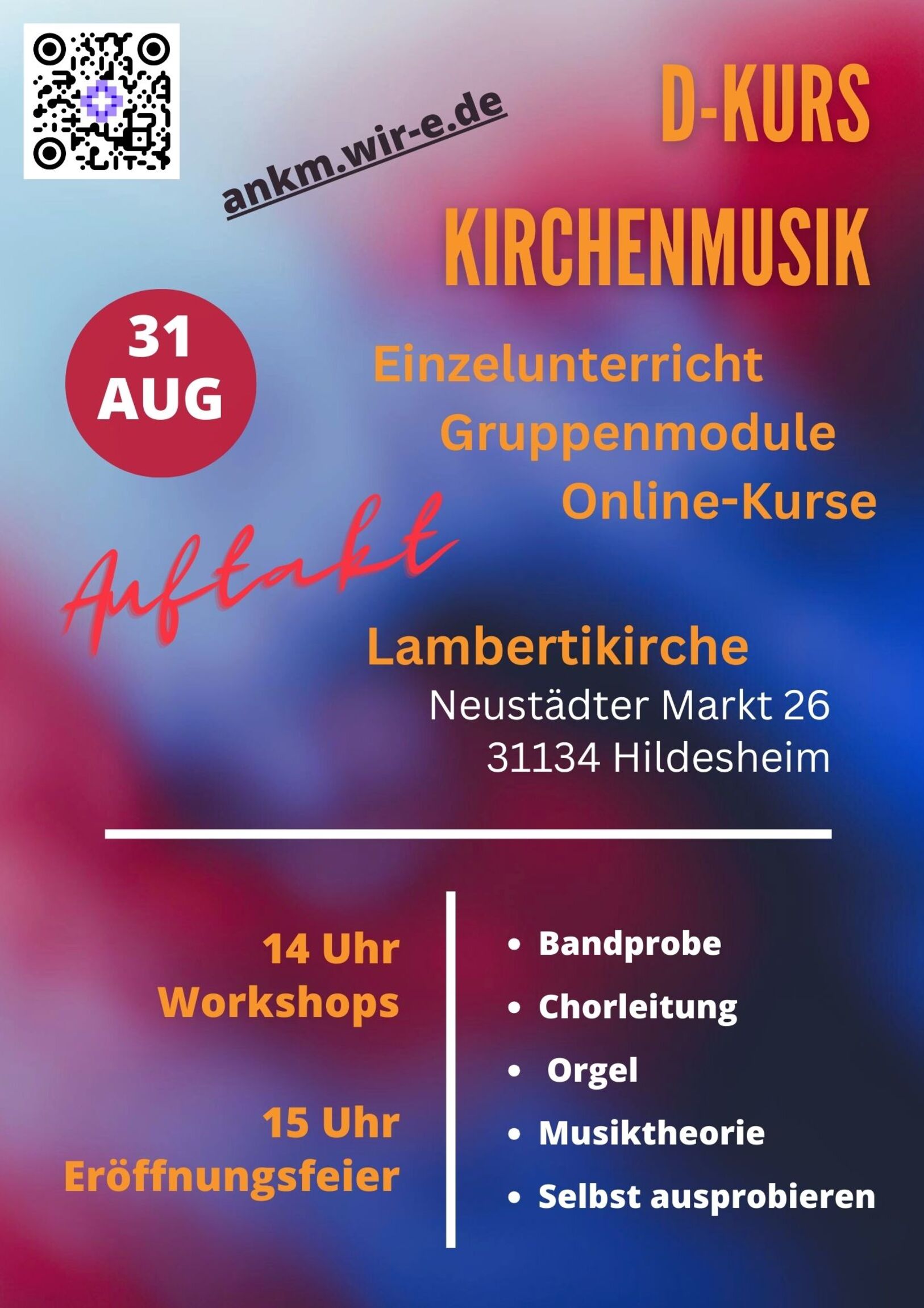 Bei der Auftaktveranstaltung können Interessierte ab 14 Uhr verschiedene musikalische Angebote ausprobieren, über die Schulter schauen, mitsingen, mitgrooven oder sich einfach auf dem „musikalischen Markt der Möglichkeiten“ treiben lassen. Um 15 Uhr beginnt die offizielle Eröffnungsveranstaltung unter dem Motto „DA IST MUSIK DRIN!“ in der Hildesheimer Lambertikirche. Die Veranstaltung verspricht einen lebendigen und bunten Einstieg in die neue Ausbildungsinitiative, die sowohl junge als auch ältere Menschen ansprechen soll.