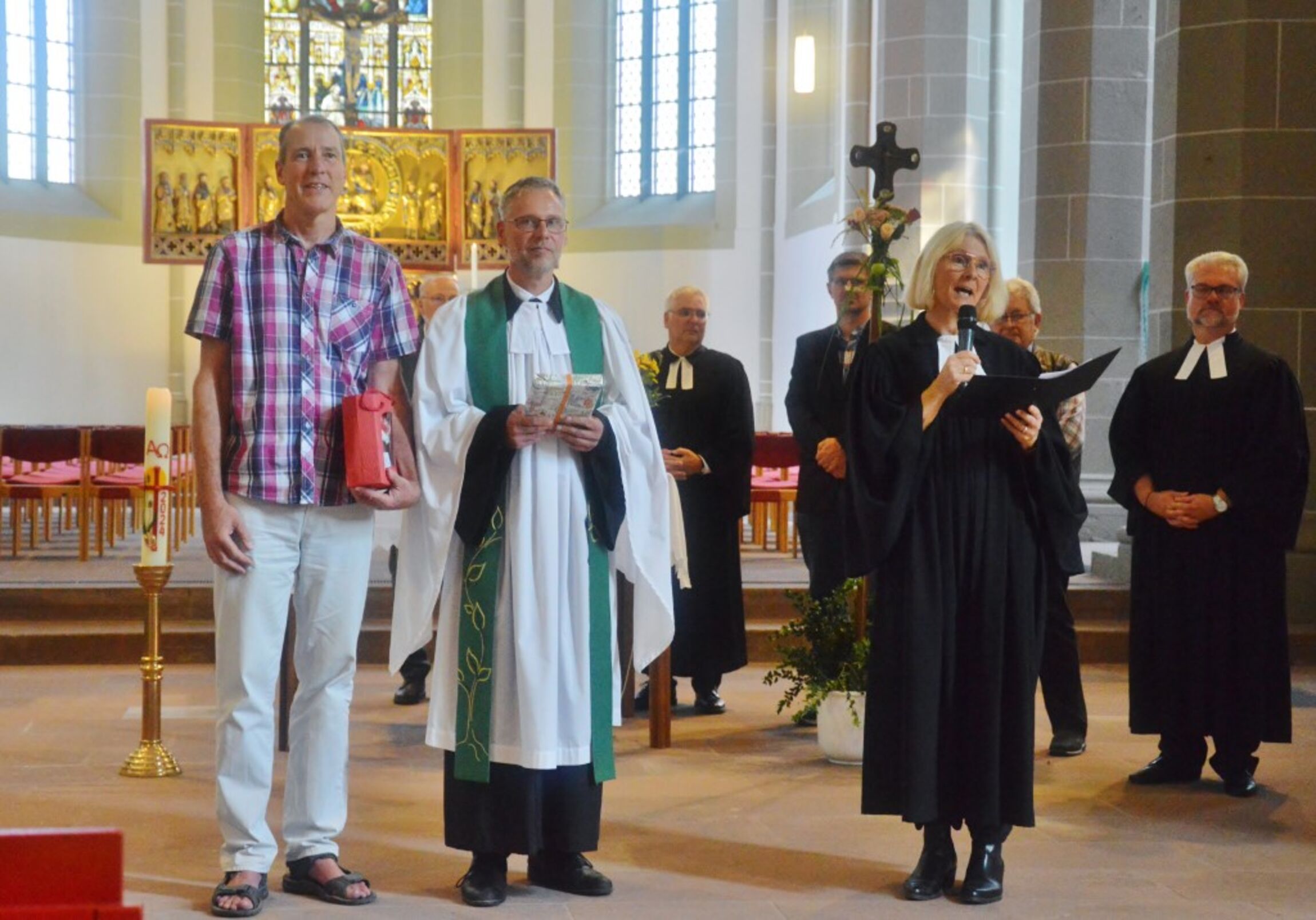 Dass beide Spuren hinterlassen klang auch in den Grußworten deutlich an. Der Kirchenvorstand, so hatte es den Eindruck, wollte beide am liebsten gar nicht gehen lassen. Dennoch sei Stefan Leonhardt nun „eine Art deutscher Kirchenbotschafter in den Niederlanden“, drückte Birgit Möller-Kühn es aus. Pastor Jens Gillner sprach über die tolle Zusammenarbeit und über die immer inspirierenden Predigten des Kollegen. Auch der Northeimer Bürgermeister Simon Hartmann wurde persönlich: Seine Söhne habe Pastor Leonhardt getauft, der Gemeinde und auch der Stadt viel gegeben, sie beispielsweise für Demokratie und Toleranz auf die Straße gegangen. Viele Northeimer, so Hartmann, hätten ihre eigenen Erlebnisse mit Stefan Leonhardt wie auch seinem Mann gemacht, die auch nach deren Abschied Bestand haben.