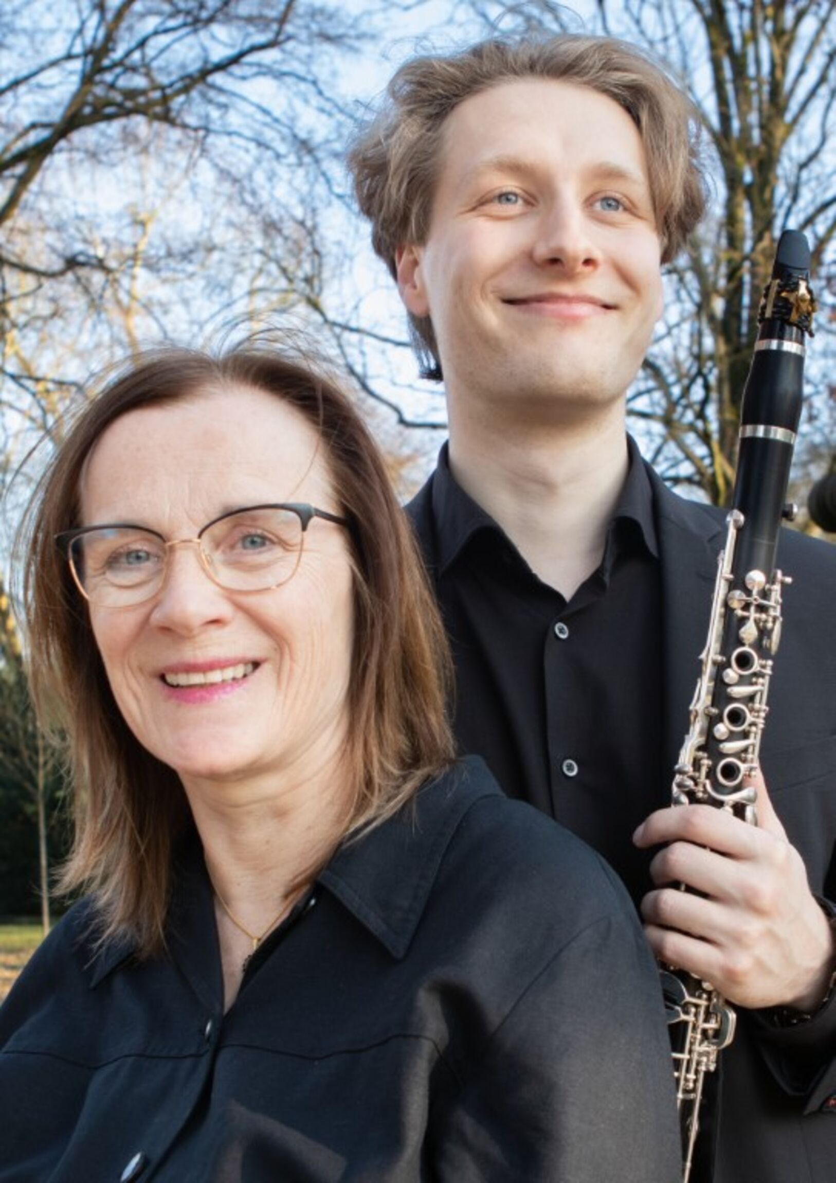 Tina Willms kommt gemeinsam mit ihrem Sohn Jan-Lukas Willms. Er ist Klarinettist im Niedersächsischen Staatsorchester in Hannover und begleitet den Abend am Klavier und auf der Klarinette.