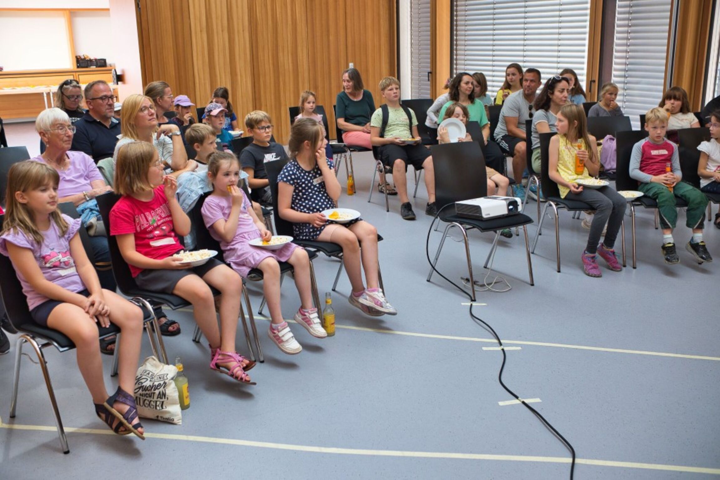 Nach dem Film blieben die Kinder und die Erwachsenen zu einer Rallye im Gemeindehausgarten am Stiftplatz. Passend zum Film konnte man an verschiedenen Stationen zum Beispiel einen Schulranzen-Lauf machen, eine „Autofahrt“ durch den Gemeindesaal oder Zaubertrank einsammeln. Nach drei Stunden Spiel und Spaß rund um die Münsterkirche wurde zum Abschluss gemeinsam getanzt.