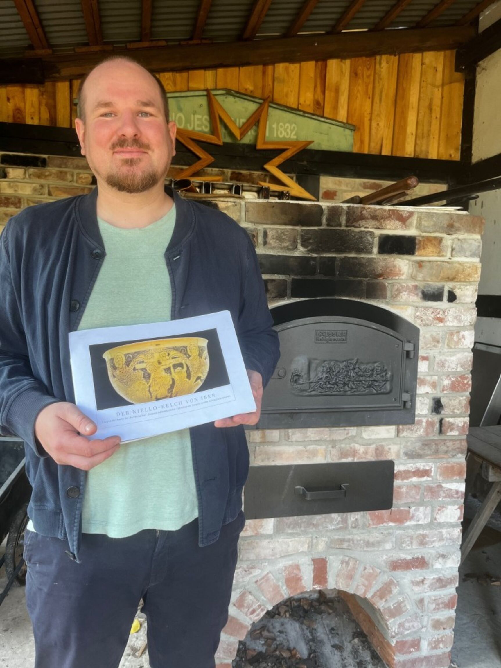 Iber. Ob auf sechs großen Bannern in der Johanniskirche Iber oder vermittels einer Klappkarte zum Passions-Medaillon – der Niello-Kelch von Iber ist mit seinen Bild-Welten in den letzten Jahren mehrfach einem interessierten Publikum vorgestellt worden. Was nun noch fehlte, sei eine Gesamtschau zum gegenwärtigen Kenntnisstand zum Niello-Kelch im Stil eines seitenstarken Magazins: „Insbesondere, damit einmal alle Fotos des Kelchs – in ihrer wunderbaren Qualität – veröffentlicht, sowie ihre kunsthistorische Deutung einmal allgemeinverständlich abgedruckt werden, haben wir uns zum Ziel gesetzt, noch einmal eine für uns letzte Veröffentlichung zum Niello-Kelch vorzunehmen“, so Jan Höffker, der das reich bebilderte und eingängig erklärte Magazin "DER NIELLO-KELCH VON IBER. Zeugnis der Macht der ‚Herren zu Iber‘, Zeugnis mittelalterlicher Frömmigkeit, Zeugnis großer Goldschmiedekunst" verfasst hat. Jan Höffker ist Doktor im Fach Kirchengeschichte und hat zuletzt immer wieder zu den Bild-Welten des Niello-Kelchs und deren Vermittlung gearbeitet.