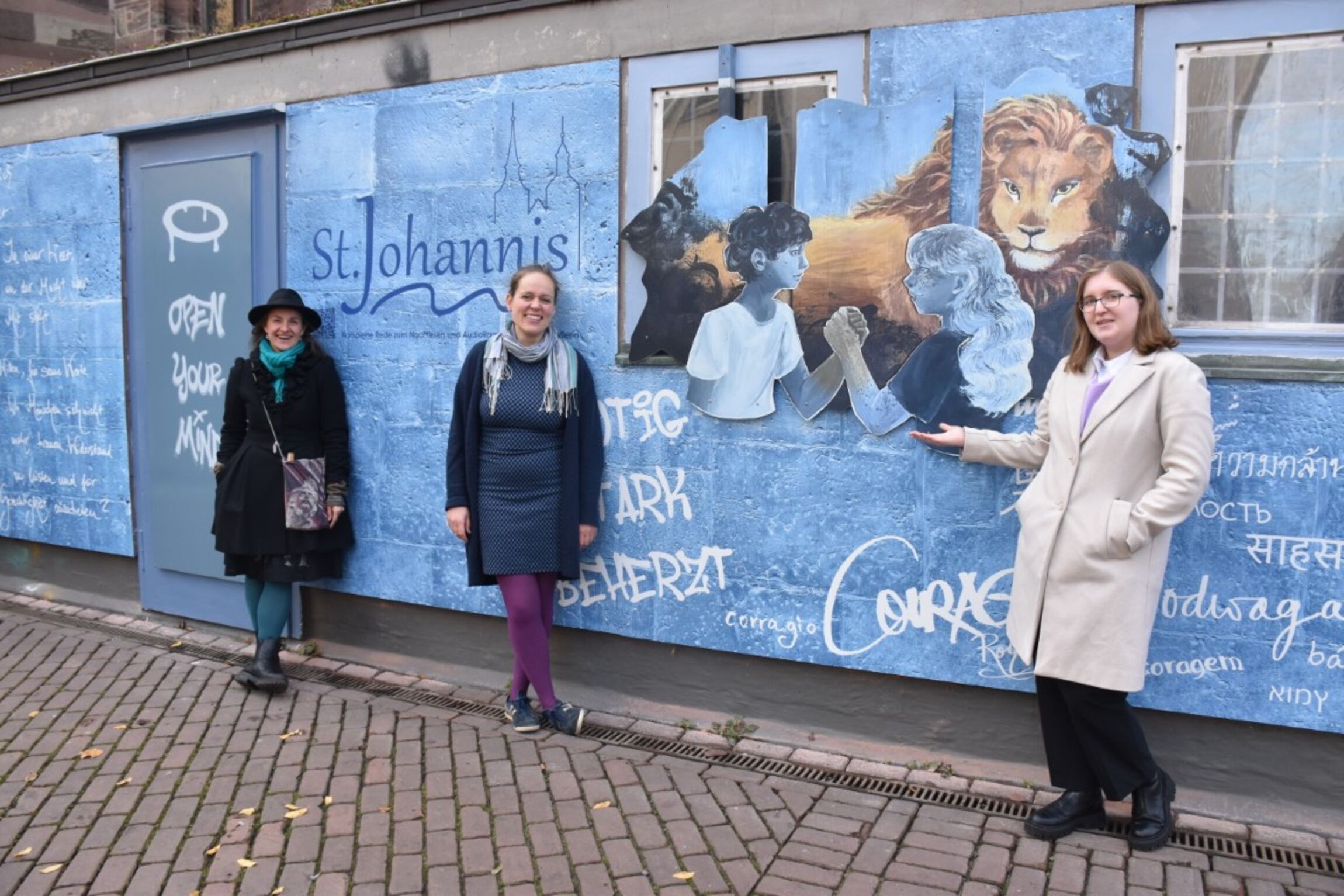 Göttingen. Zuvor war die Außenwand der Sakristei gegenüber der Stadtbibliothek Göttingen mit Graffiti‐Tags besprüht. Jetzt ziert sie ein Kunstwerk zum Thema Mut.