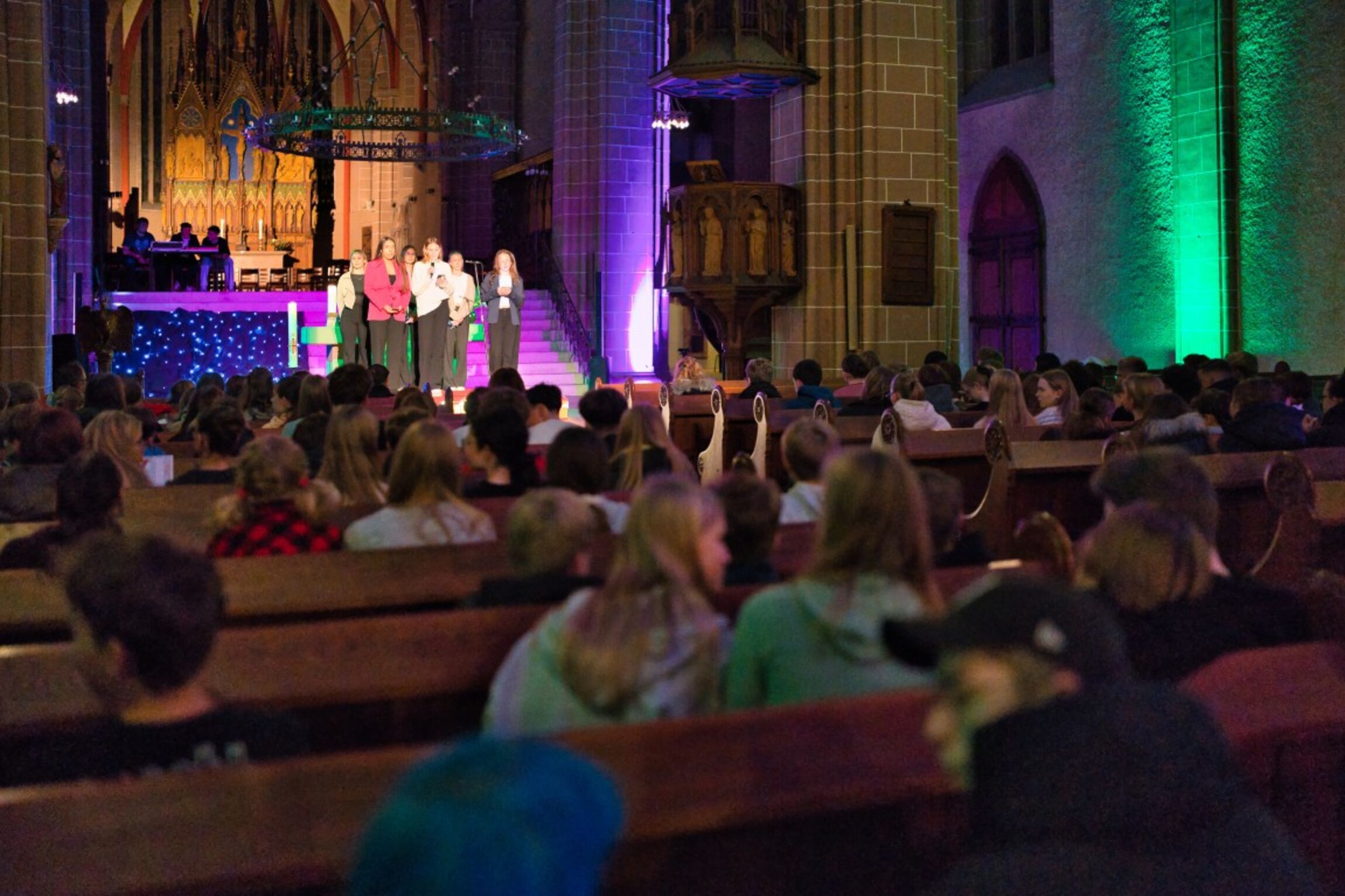 Gegen 22 Uhr endete die Münsternacht mit einer Schlussandacht. Die Teamer*innen entließen die Konfirmand*innen in die Nacht mit einer bunten Sternstunde und einem Segen.