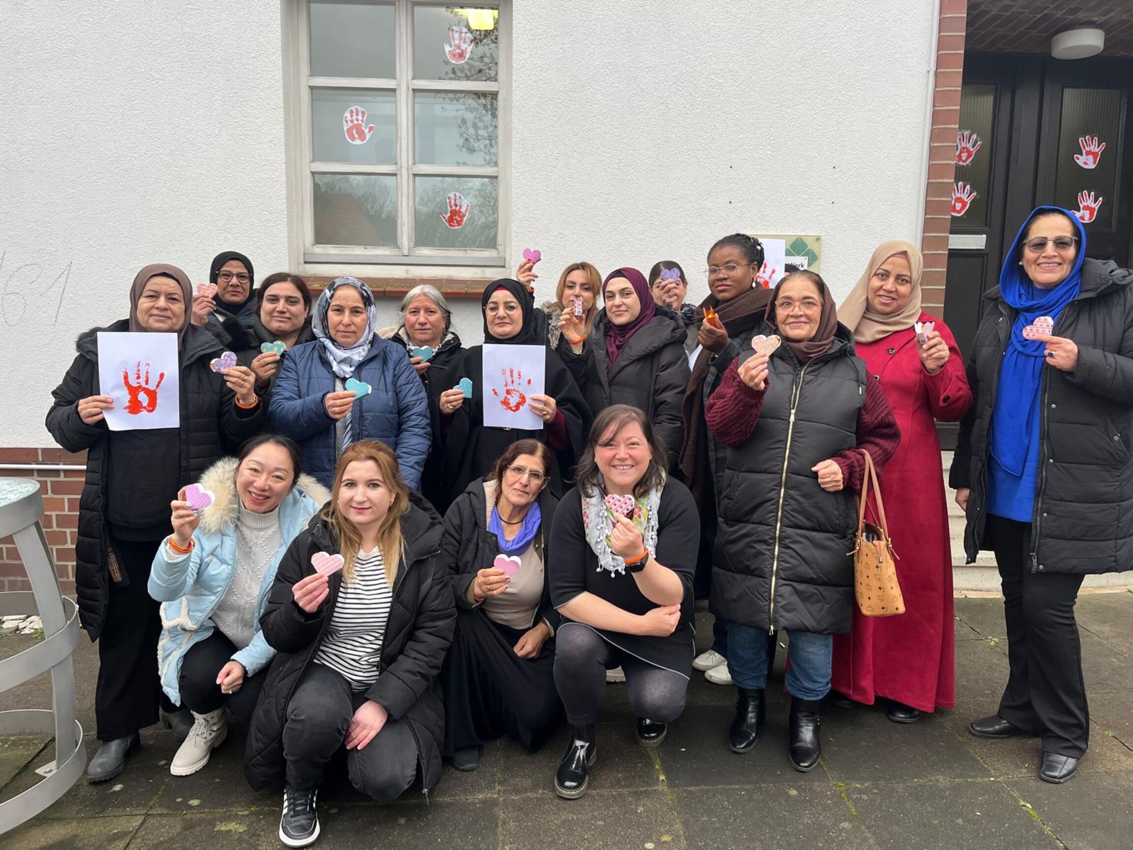 Im Rahmen der Aktion bastelten die Teilnehmerinnen Herzen mit Botschaften gegen Gewalt. Diese Herzen wurden nicht nur als Symbol der Hoffnung gestaltet, sondern auch als praktische Hilfe: Jede Frau erhielt ein Herz mit der Information zum Hilfetelefon, das anonym und kostenlos erreichbar ist. So soll deutlich werden: Gewalt darf nicht hingenommen werden, und es gibt Wege aus der Isolation.